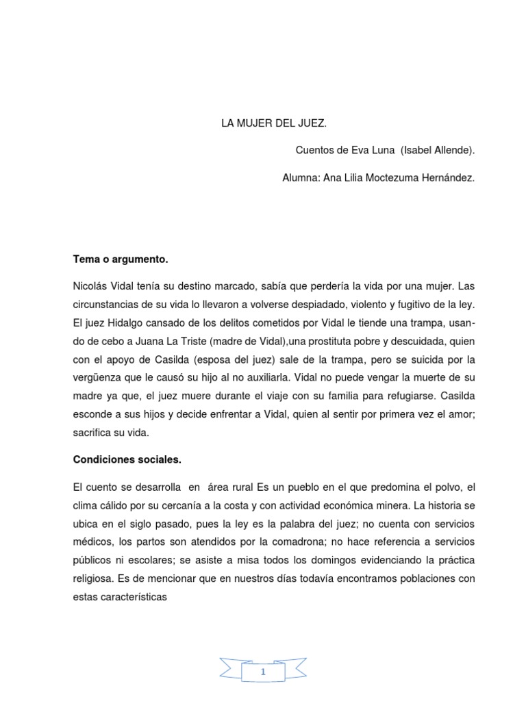 La Mujer Del Juez English : (adapted from a story by isabel allende). Posted by goimages-base Thursday, October 22, 2020